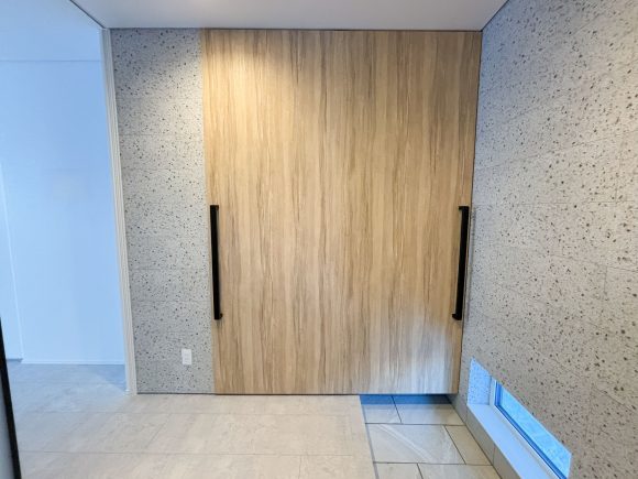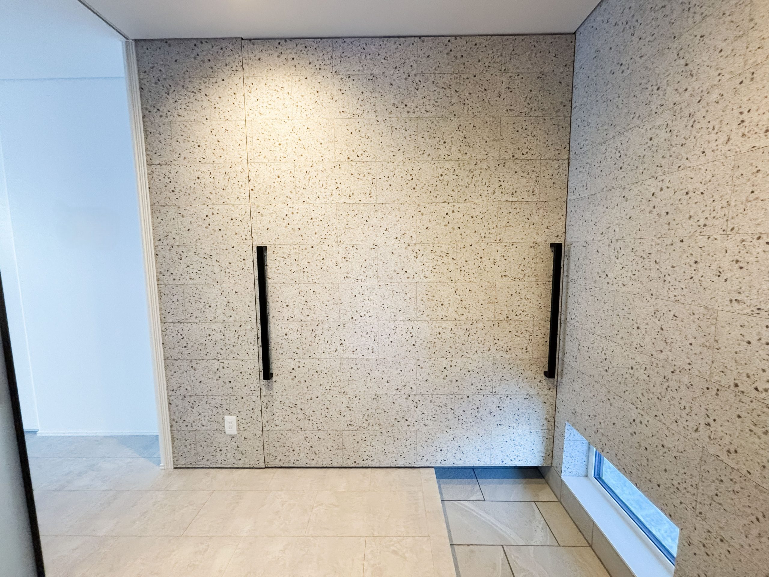 玄関に入ると普通の壁に感じることができる回転ドアを設置!大きくても簡単に回すことができます!
