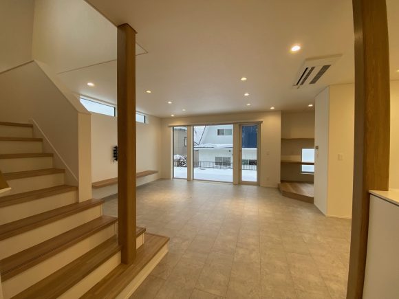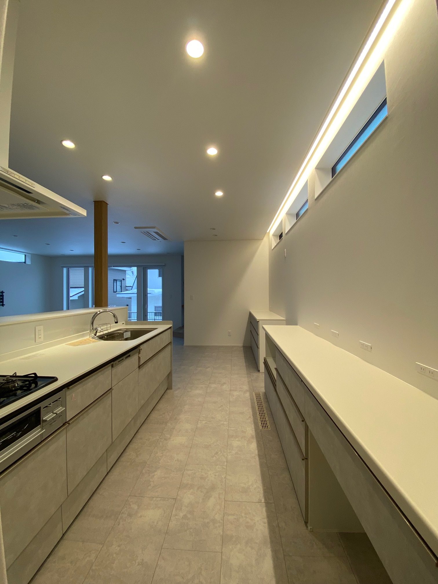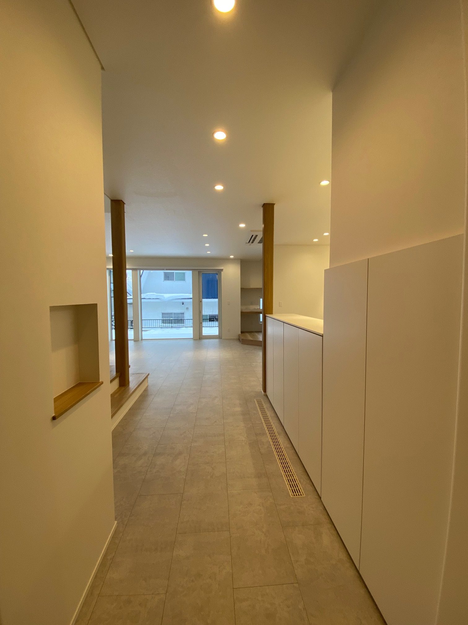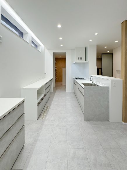 玄関からキッチンへ、ファミリークローゼットからバスルームへといった考えられた回遊動線になっており、デッドスペースを無くして有効活用しています!