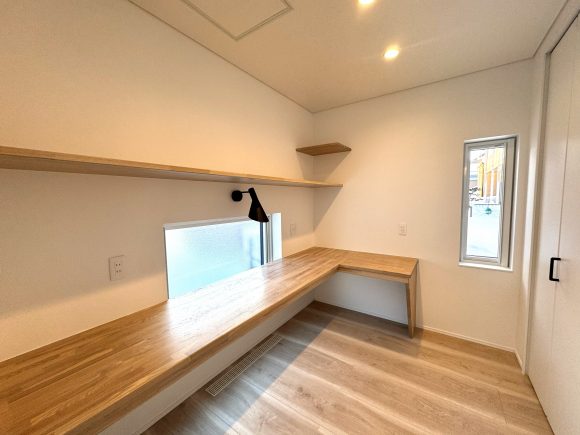 LDKと続き間になっている書斎スペース!小上がりになっており、棚や机は造作になります!