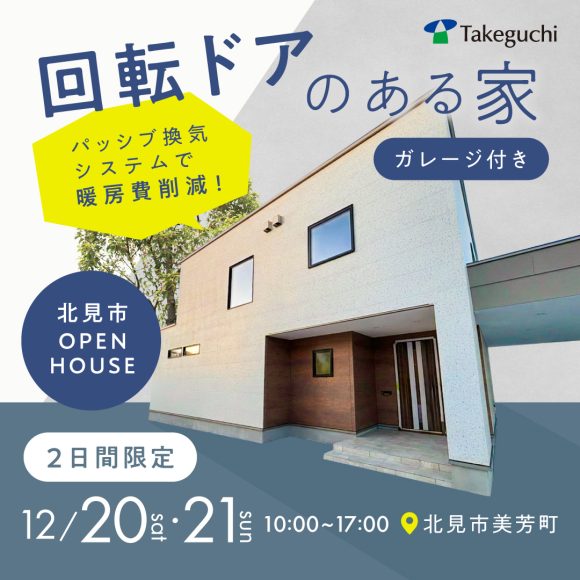 2025/12/17更新EVENT 12月20日〜21日公開|ガレージ付き!回転ドアのある家見学会【北見市】 詳しくはこちら 性能・断熱性が抜群な竹口組の住まい。ホームページには載せきれなかったもっと詳しい性能のこと、仕様のことを掲載していますので家づくりの参考にぜひ、ご活用ください。 無料で資料を請求する まずはお気軽にお問い合わせください 【営業時間】8:00~17:30(定休日 日曜日、第2・4土曜日) 「モデルハウスを見たりイベントに参加してみたい!」という方は イベント情報 「セミナーや相談会に参加したい」という方は セミナー・相談会 「まずはじっくり自宅で検討したい」という方は 資料請求
